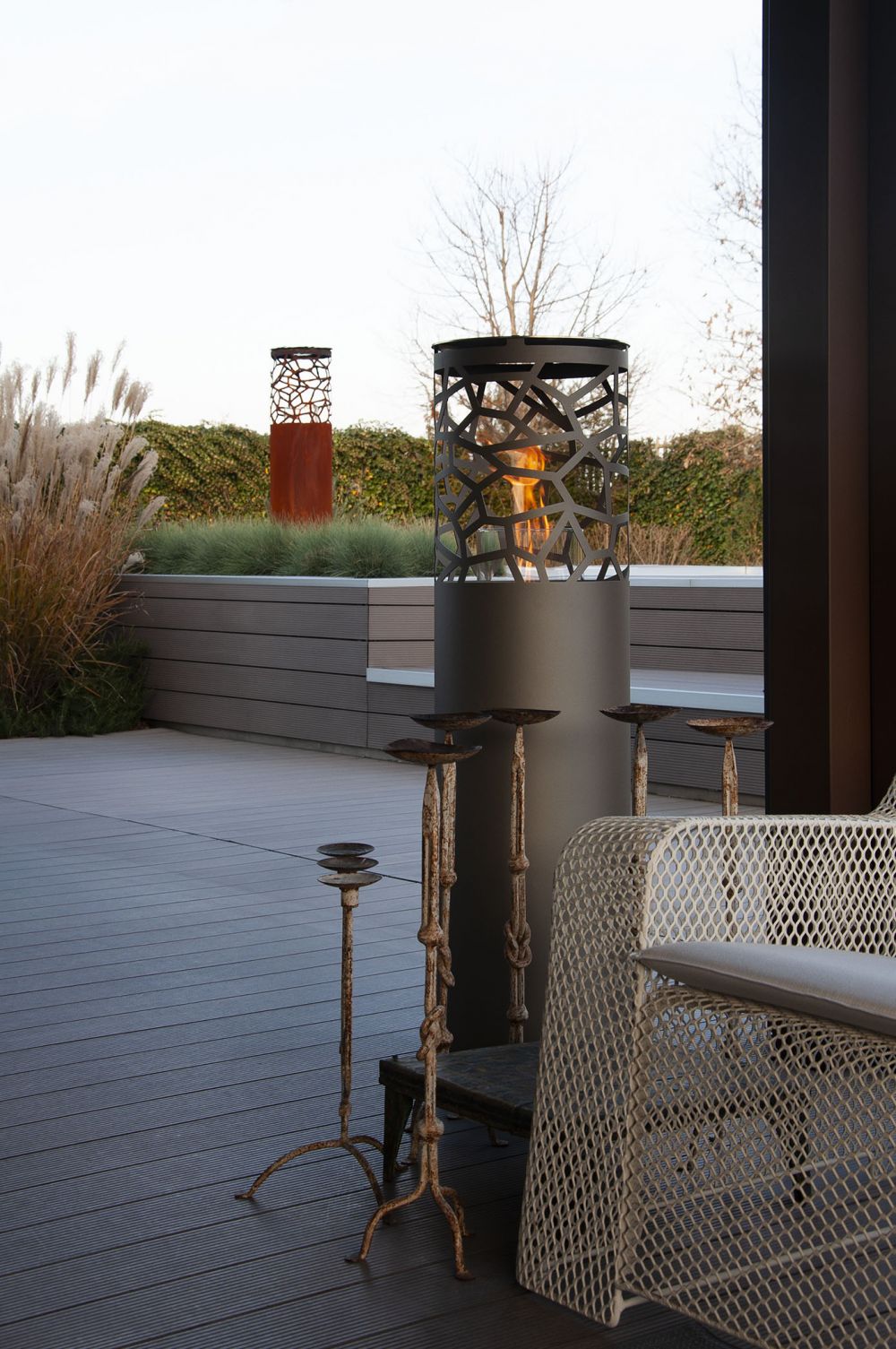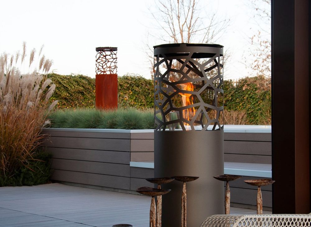 Le tout nouveau chauffage extérieur à granulés FARO CORE de Primato vous enchantera grâce à sa forme cylindrique ajourée.
